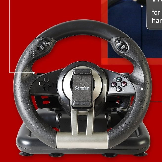 However, games are no longer just focused on consoles anymore; we also found great titles on PCs and in recent years, the most trending ones, on mobile phones. Also, some manufacturers create difficulties when we want to use a controller on other consoles or other platforms, causing us to purchase a wheel for each platform. But… today, thanks to Serafim, maybe we can have the solution to it. An economical but well-performing steering wheel made of good structural materials and high-quality craftsmanship, as well as professional design help, make it the first wheel to offer cross-platform support (PS4, PS3, Xbox One, XBOX SERIES X & S, PC, and mobile devices!) No matter if you have an Android or iOS phone, this wheel is compatible.