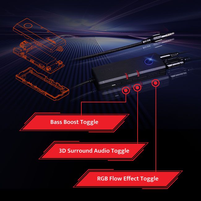 The audio box with built-in DSP chip provides 3D surround sound, allowing users to enjoy the balance between comfort and luxurious performance, as well as Bass Boost to give you immersive experience