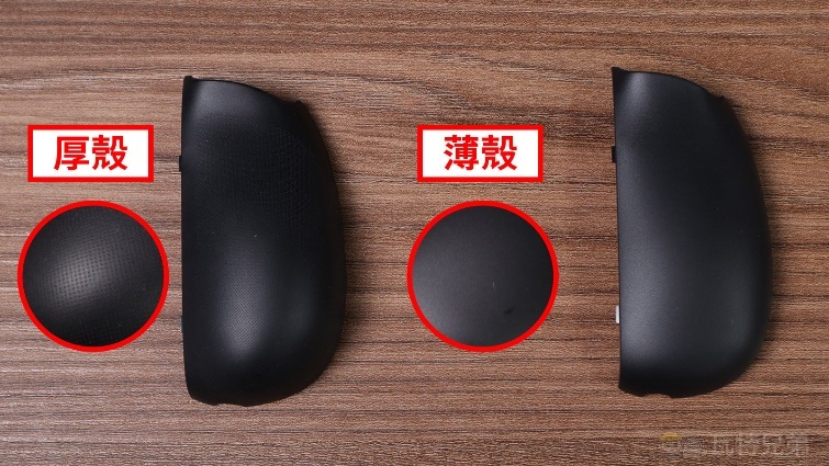 至於該選擇哪一種,這方面就見仁見智了,由於瓦特比較重視實用性,手也比較大,自然比較偏向止滑效果較佳的「厚殼」,不過個人主觀體驗並不一定適合所有玩家,建議還是依個人習慣來選擇。