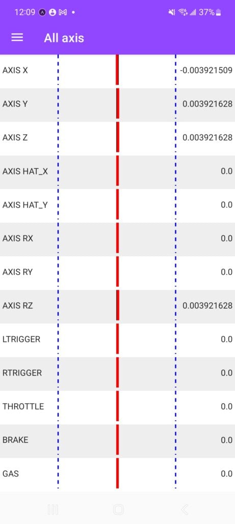 ▼ 類比搖桿放開放,各軸殘留數值約為 ±0.0039