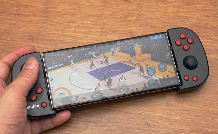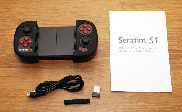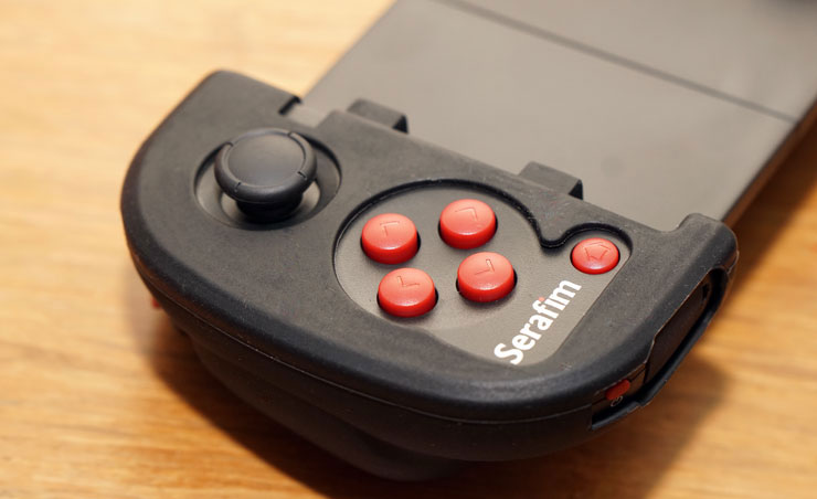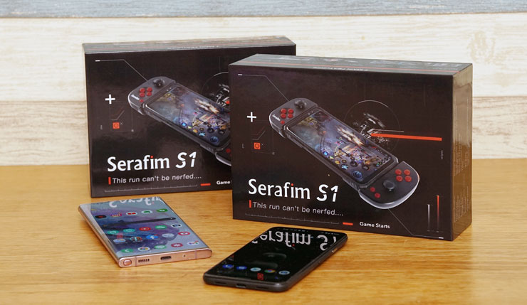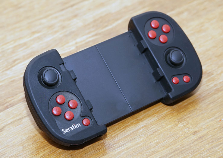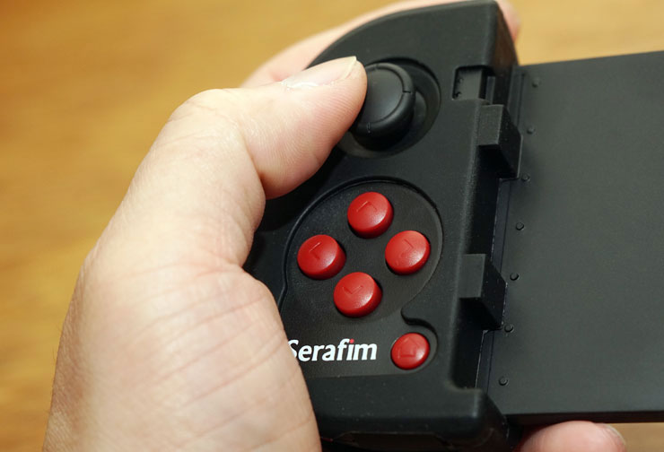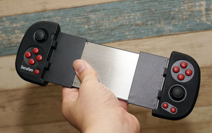 Serafim S1 的整體造型走簡約、圓潤的風格,自帶夾具可以支援 162 mm 以下長度的手機,即便是時下流行的 6 吋以上大螢幕手機也能輕鬆支援。另外在操控介面方面,Serafim S1 也提供相當完整的配置,除了左右手各一個類比搖桿,也提供四方向鍵、四功能鍵與左右兩組肩鍵,並對應一般遊樂器常見的兩組功能鍵,而這樣的按鍵數量也足以應付絕大多數遊戲的需求。