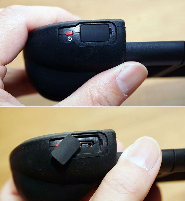 圖:左側下方有電源鍵與帶保護殼的 microUSB 充電埠。