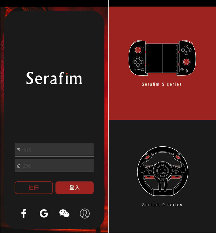 圖:Serafim Play 需要註冊並登入帳號,也能透過 FB、Google、微信的方式來快速登入,登入後可選擇 Serafim S 系列(上方)。