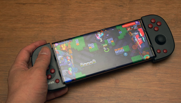 不過話說回來,對於老玩家而言,「遊戲手把」可以說是最習慣、也最為順手的操控介面,無論在家用主機或是電腦平台無論玩何種遊戲都能輕鬆上手,但面對以「觸控螢幕」為主要操控方式的智慧型手機來說,有愈來愈多需要複雜操作的遊戲出現-像是 MOBA 、FPS 或是 ARPG…等遊戲,雖說可以透過螢幕上的虛擬按鍵來操控,但操作起來的順暢度卻遠遠不及遊戲手把,且不適宜長時間遊玩,也因此目前市面上可以看到愈來愈多支援手機平台的無線藍牙遊戲手把出現,同時也有愈來愈多遊戲預設支援遊戲手把操控,但若以整個手機遊戲市場而言,可以支援用手把暢玩的遊戲只佔極少數,對於習慣使用遊戲手把的玩家來說,「磨擦螢幕」的操作方式怎麼樣都不夠直覺順暢!