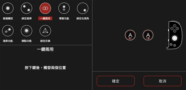 圖:另外「一鍵兩用」的功能也非常實用,有些動作遊戲需要同時按下兩鍵來觸發特殊動作或招式,就能直接綁定特定的按鈕來快速啟動!