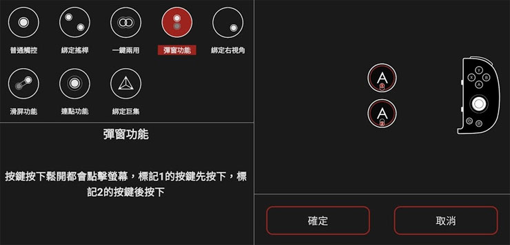 圖:「彈窗功能」比較適合一些需要頻繁打開背包、功能選單的遊戲,透過設定可將按鍵綁定螢幕點擊的動作,讓操作變得更簡化!