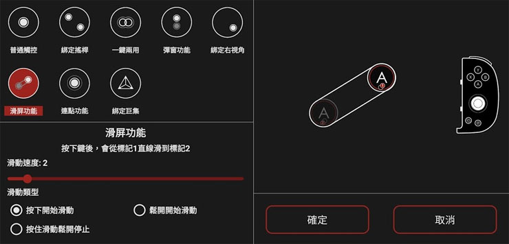 圖:對於遊戲中有指定觸控滑動操作需求,我也能利用「滑屏功能」來預設好滑動操作的動作,一鍵操作更便利!