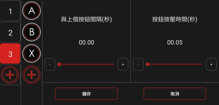 圖:以「自定義」為例,Serafim Play 提供了一個簡單易懂的選單介面,可自由新增想要的巨集動作順序(數字為順序)以及對應的按鈕組合,每一個動作順序都提供複數按鈕的操作,也能設定每一個按鈕按下的間隔時間與按壓時間,可設置的範圍非常細膩,以阿祥遊玩的格鬥類遊戲為例,就能將角色的必殺技或連續技的按法設置好,以一鍵方式啟動。
