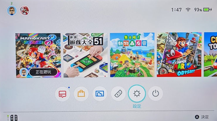 圖:接下來我們先不忙安裝 Dongle,先打開 Nintendo Switch 並在主頁選擇「設定」。