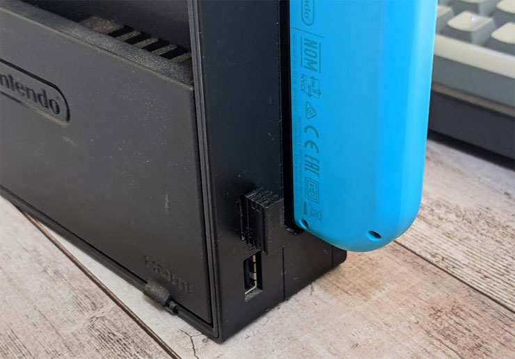圖:接下來請將 Serafim Dongle插入 Nintendo Switch 底座的 USB 埠上,並開啟主機電源。