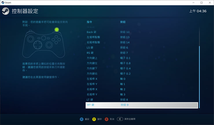 圖:透過 Steam 的控制器設定我們可確認各個操作功能對應的按鍵。