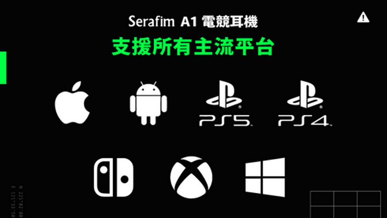 全球首款電競耳機支援多平台PS5、PS4、PC、Nintendo Switch、Xbox One、Xbox Series X|S、Mac、iPad、iPhone、Android, Serafim A1備有3.5mm音源接口,並隨附轉接線,讓玩家無論是在電腦、Switch、遊戲主機,還是手機上使用,都能隨插即聽不間斷。