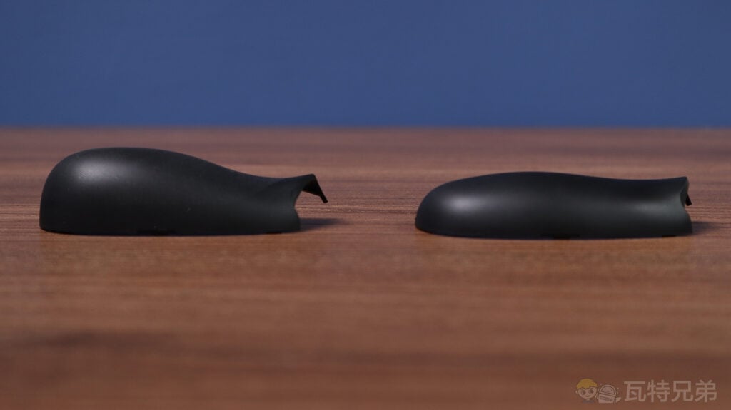 Thickness comparison between the thick grip (left) and the thin grip (right)