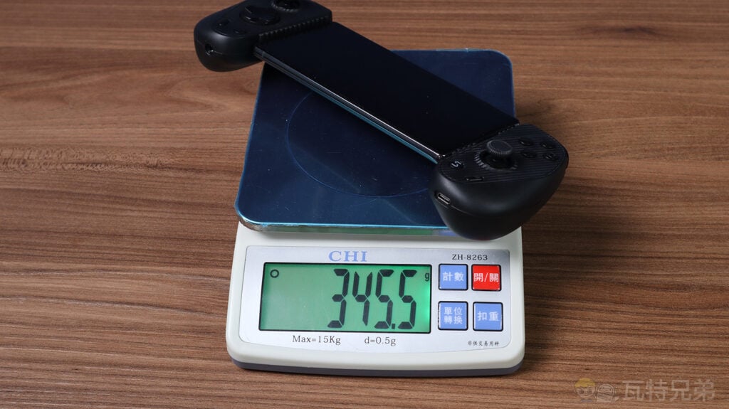 Weight measured as 345.5g with a Galaxy Note 20 installed
