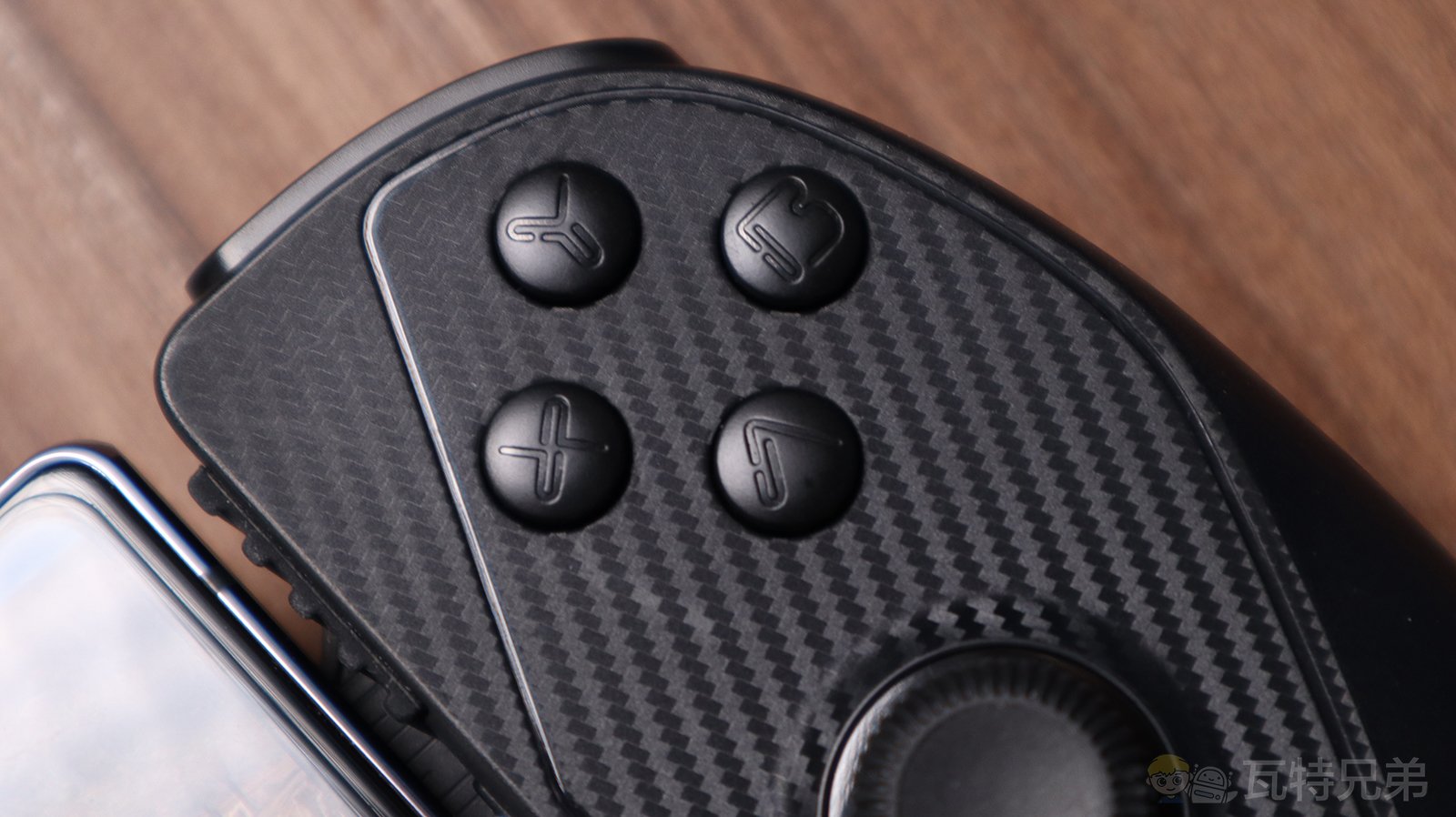 The Serafim S3 controller surface uses a carbon fiber pattern for visual and tactile effects. In terms of functionality, the button layout includes standard joysticks, a D-pad, ABXY buttons, and RL triggers. Additionally, there are special function keys for screenshots and recording videos, catering to everyday mobile game needs.